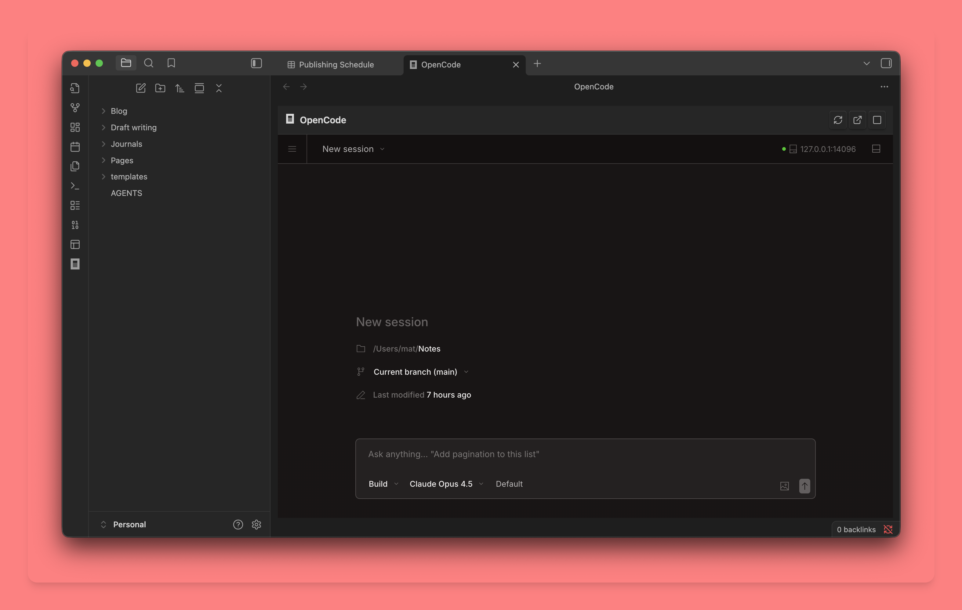 直接通过命令、目录、或者插件在笔记目录启用 opencode