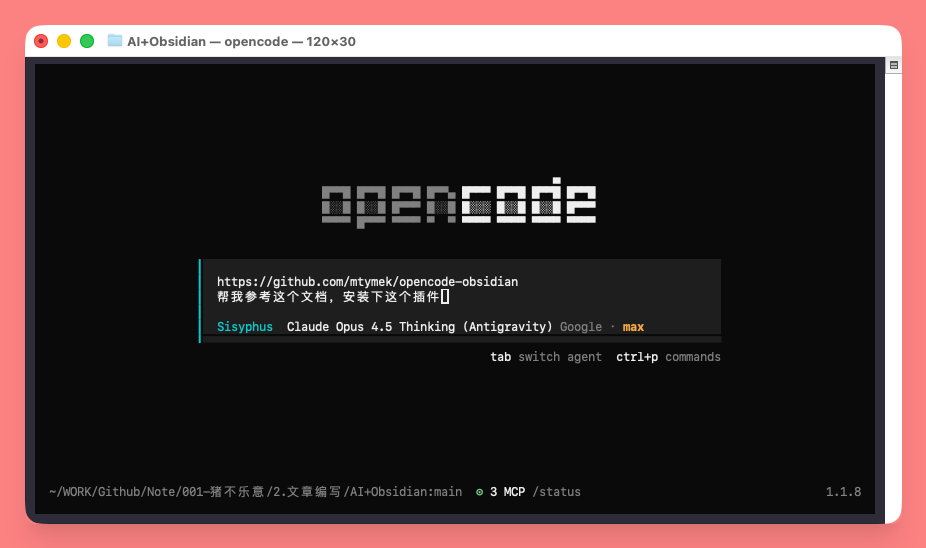 在 Obsidian 中使用 opencode